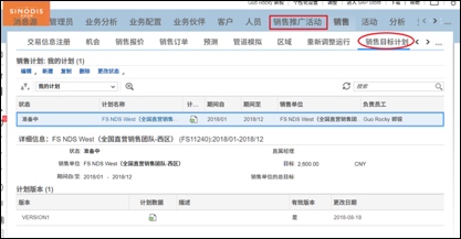 登录C4C ,打开“销售”->“销售目标计划”视图。