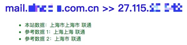如果你的内网 IP 地址不是公司私有域内的 IP,例如你在自己家里,那么公司邮箱 mail.example.com 解析为外网 IP 27.115.1.1