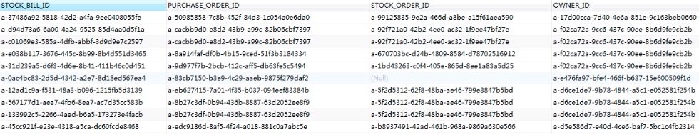 GROUP BY PURCHASE_ORDER_ID,STOCK_ORDER_ID,OWNER_ID